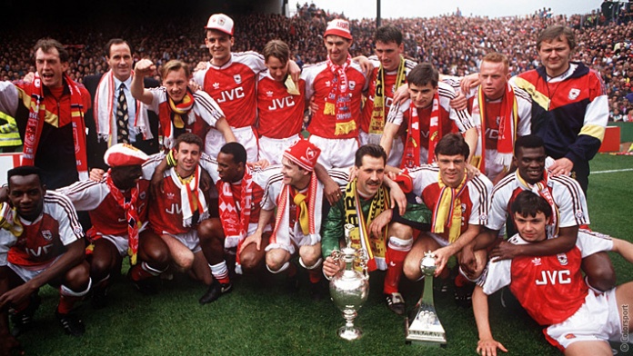 In the 1992–93 season Arsenal became the first side to win the FA Cup (in a replay) and League Cup double, beating Sheffield Wednesday on both occasions by a 2–1 score. The next season they continued in the same vein, winning the UEFA Cup Winners’ Cup, their second European trophy; in the final Arsenal beat favourites and holders Parma 1–0 with a typically tight defensive performance and Alan Smith’s 21st minute goal.