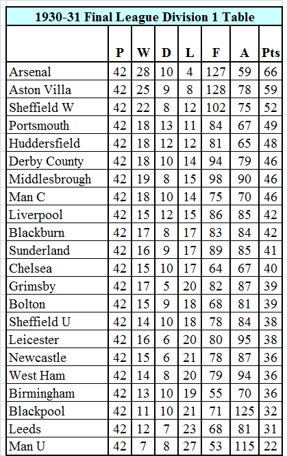 This was the first time one of the Southern teams won the Division One title. Arsenal were continuing their rise to the top echelons of football, Herbert Chapman had put together an exceptional forward line consisting of Jack Lambert, David Jack and Cliff Bastin and opposition defences simply could not cope with their combined skills. Lambert scored 38 goals in 34 matches, Jack 31 in 35 and Bastin 28 from 42. Joe Hulme also netted 14 times as Arsenal scored 127 league goals, a club record for a single season.