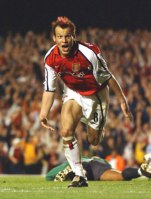 Freddie was signed by Arsenal in 1998 for £3 million, Arsenal scouts watched him for over a year and Arsenal’s manager, Arsène Wenger, took the unusual step of authorising the signing after watching him play for Sweden in their victory against England on television, without seeing him play live. Freddie scored on his debut on 20 September after coming on as a substitute against Manchester United. He endeared himself to Arsenal supporters by having a bright red stripe in his hair. (A popular chant spawned from this to the tune of “Can’t Take My Eyes Off You” by Frankie Valli and the Four Seasons: “We love you Freddie, because you’ve got red hair, we love you Freddie because you’re everywhere, we love you Freddie, you’re Arsenal through and through” Later when he shaved his head this was updated to “We love you Freddie, because you’ve got no hair”).