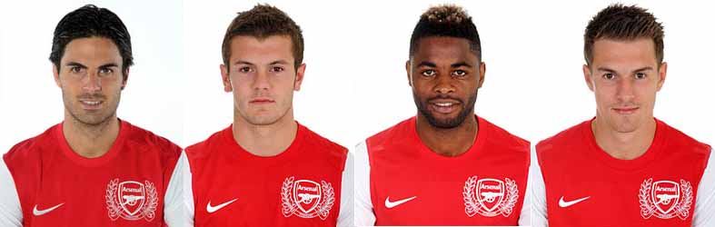 Since The Boy Wonder’s place is not in question I shall consider the midfield to be the ‘5’ in a 4:5:1 formation – but you can call it 4:3:3 if it makes you happy. I have no hesitation on current form in saying that wide midfielders places are not in question, Theo and Gervinho have been excellent and are clearly Arsène’s first choice, but we still have very good options in Arshavin, the Ox and possibly Ryo in time.