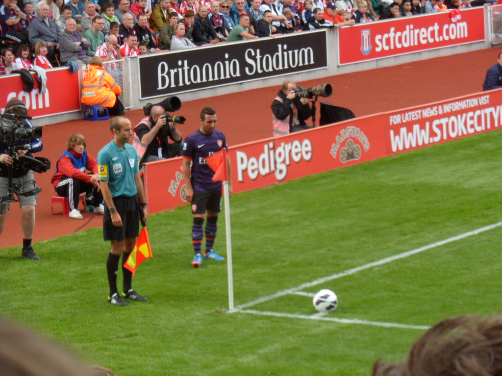 From the start, it became clear Stoke expected us to dominate play and a row of 4 defenders and five midfielders were positioned in front of their goalie, in order to make life difficult for us. Arsenal combined well and was able to pin Stoke back from the first minute. The ball was being passed round the way we have become so used to over the last few years, and we were able to breach their bus-shaped defensive walls on a number of occasions. If, now and again, we lost the ball in Stoke’s half – especially Diaby and Gervinho had a few moments of weakness at the start of the game – our defenders pressed the opposition quickly and forcefully, resulting in us regaining possession almost instantly. On Sunday, we owned the area between their box and the mid-circle once again, and long may it continue.